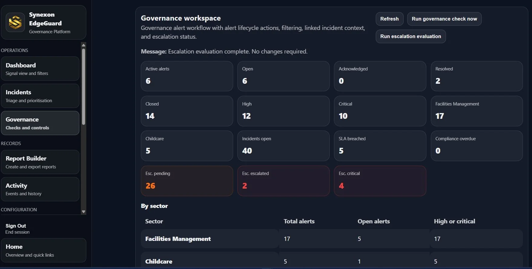 Ensure structured governance across building services, essential safety measures, and maintenance obligations. EdgeGuard captures asset events, maintenance activities, and compliance records with time-stamped traceability — keeping operators informed and audit-ready at all times.